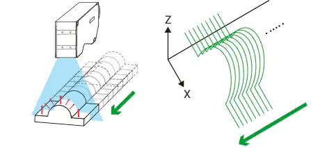 通过移动目标或传感器头部来积累高度数据来测量形状。