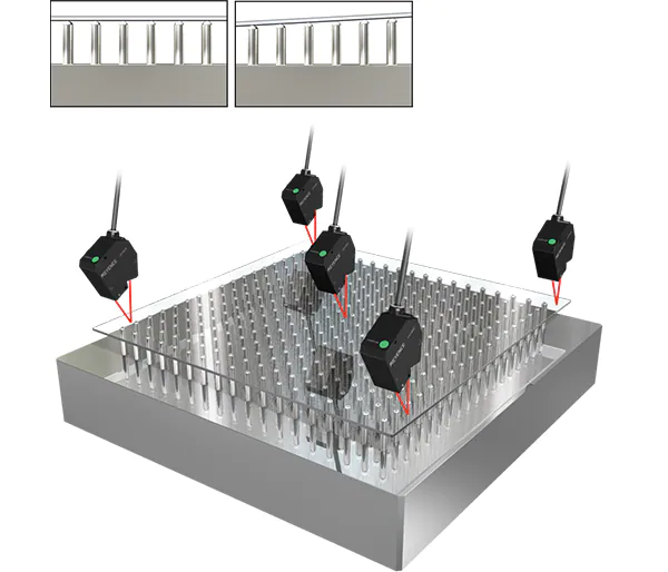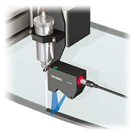 LJ系列2D激光位移传感器具有世界上最快的采样速度。即使在高速控制点胶机时,也可以测量所插入的螺距,从而防止密封故障。