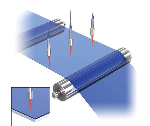 SI系列光谱干涉激光位移传感器的厚度测量是用一个只有30µm的小光斑来完成的。这使得精确的测量一直到边缘。SI系列是检测绕组形状缺陷和防止卷带的有效工具。