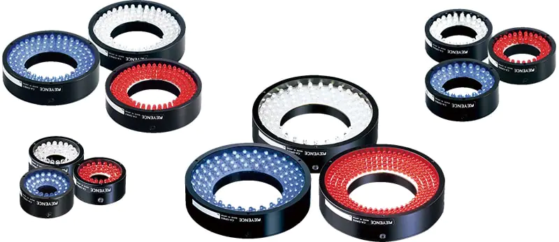 CA-DR系列包括平坦的水平布置LED,有助于在目标上提供均匀的强度。环灯有六种尺寸和三种颜色,具有可选的扩散和偏振板,非常适合各种基本应用和相机需求。